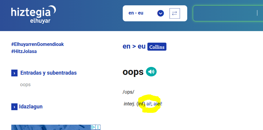 Hara! Ene! (harridura-kutsua du, ez dakit ingelesezko oops!-ek hori adierazten duen)